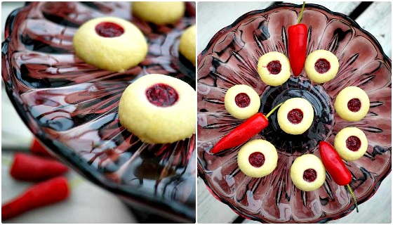 Mördegskakor med chili- och hallonsylt